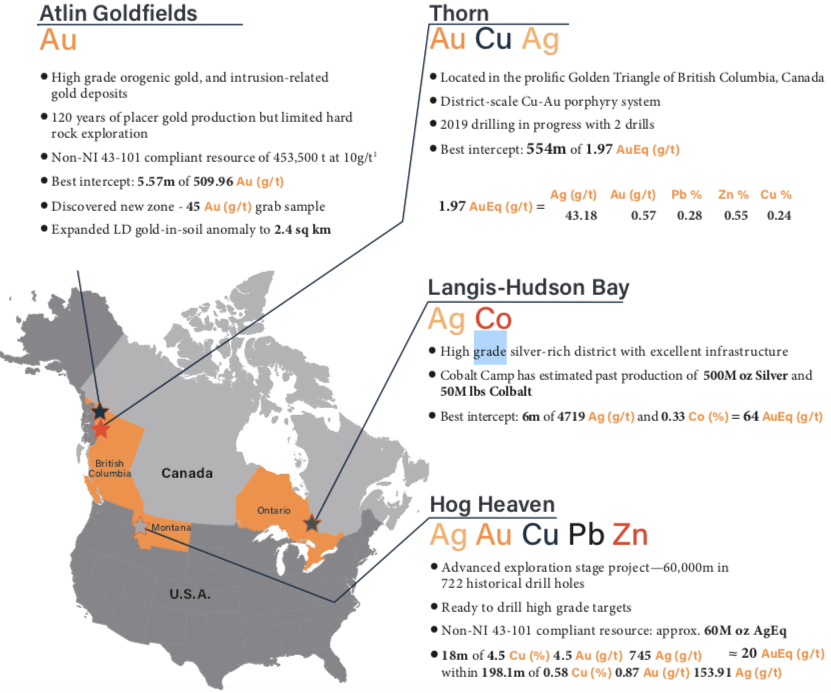 Im Nordwesten von British Columbia, Kanada besitzt Brixton Metals zwei Liegenschaften. Zum einen das Goldprojekt namens Atlin Goldfield sowie das Gold, Silber & Kupferprojekt Thorn. Auf dem Atlin Goldfield Gelände lag der bisherige Spitzenwert an gefundenem Gold bei einer Bohrung über 5,57 m und einer Goldmineralisierung bei über 500 g/t.