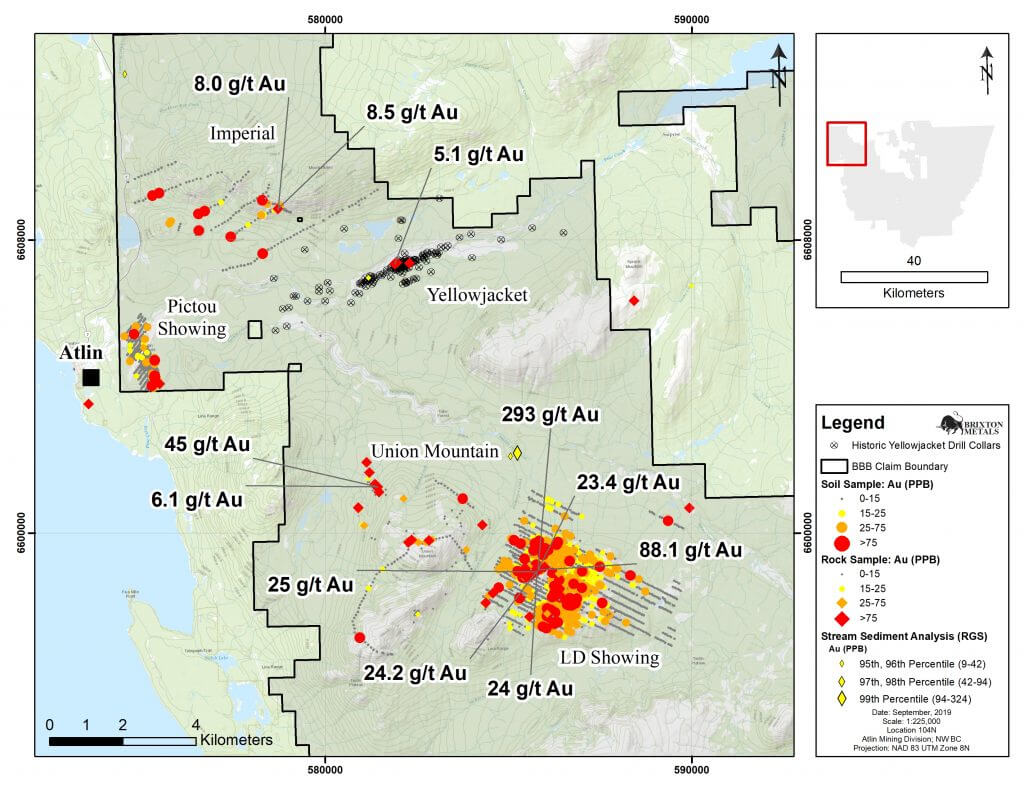 Am Union Mountain, welcher sich südöstlich von der Stadt Atlin befindet, wurde bei den Vorbereitungen für ein Bohrgebiet für das kommende Jahr 2020 bei Schürfproben ein Goldgehalt von 45 g/t festgestellt. Von diesem Ergebnis waren alle überrascht und daher werden auch 2020 sicherlich weiter gute Nachrichten berichtetet werden, denn die mit 8 Millionen CAD gefüllte Kasse lässt wieder ein größeres Bohrprogramm erwarten.