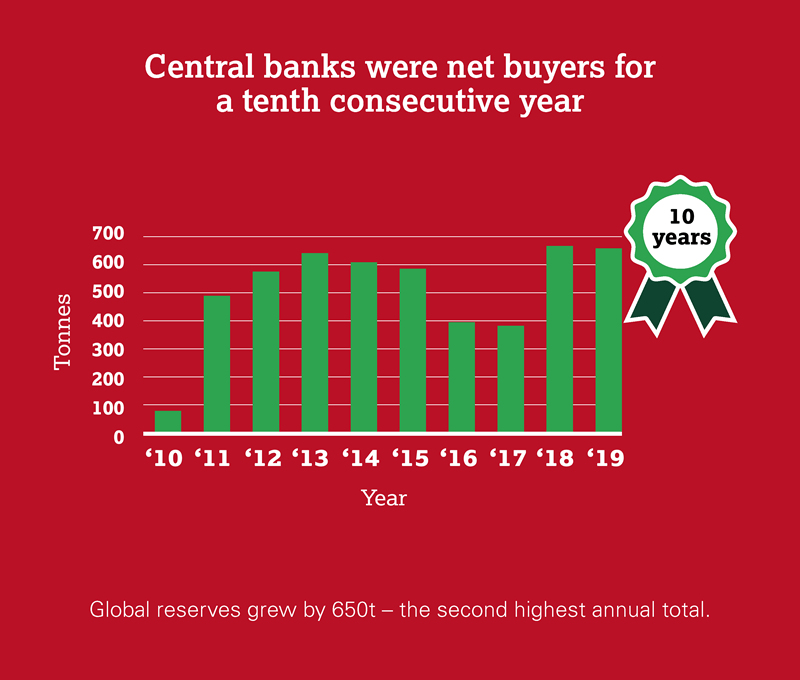 Der Goldpreis stieg in 2019 um über 18% und die Nachfrage nach Gold bleibt hoch, denn viele Zentralbanken stocken Ihre Goldreserven weiter auf. Spitzenreiter an Zukäufen in 2019 war die Türkei mit 159 t, gefolgt von Russland mit 158,1 t, Polen mit 100 t und China mit 95,8 t. Mit diesen hohen Zukäufen unterstreichen die Zentralbanken, dass Gold die bessere Wahl in einer durch Niedrigzins überschwemmten billigen Geldwelt. Diese drei Unternehmen sollten von der steigenden Nachfrage der Zentralbanken, aber auch aus dem physisch gedeckten Gold-ETF‘s und Privatanleger-Bereich profitieren und eine dieser Aktien könnte als Hebelpapier die Explorerseite abdecken.