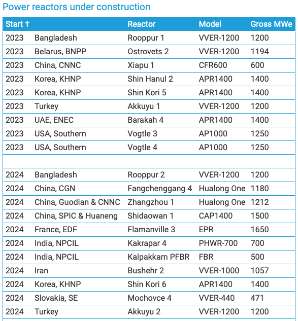Die effizienteste Form der Energieerzeugung ist die Atomenergie. Dabei beinhaltet im Energiedichte-Diagramm 1 g angereichertes Uran von allen zur Verfügung stehenden Energieträgern den höchsten Energiegehalt. Doch Uran ist knapper, als viele Marktteilnehmer denken. Wurde seit dem Zusammenbruch der Sowjetunion und den Abrüstungsverträgen der USA mit dem Nachfolgestaat Russland zur Reduktion von Atomraketen viel Uran zu Brennstäben umgearbeitet, so fehlt dieses Uran seit Aufkündigung dieses Abkommens durch die Trump-Administration für den weltweit stattfindenden Ausbau der Kernenergie. Allein in diesem Jahr 2023 gehen 9 neue Atomkraftwerke ans Netz, davon jeweils 2 in den USA und Korea sowie jeweils eins in Bangladesch, Weißrussland, China, Türkei und den Vereinigten Arabischen Staaten. Im Jahr 2024 sind es dann schon 11 neue Atomkraftwerke, die allesamt enorme Mengen an Uran benötigen. Uran wird aber immer knapper und mit dem nächsten Sanktionspaket der EU gegen Russland noch weiter verknappt.