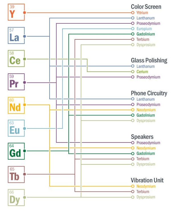Da mittlerweile fast jeder Deutsche ein Smartphone sein eigen nennt, wird die Wichtigkeit der Verwendung von seltenen Erden an dem Beispiel des iPhone der weltweit wertvollsten Marke Apple deutlich. Hier sehen Sie die verschiedenen Anwendungsfelder und welche seltene Erden wo verwandet werden.