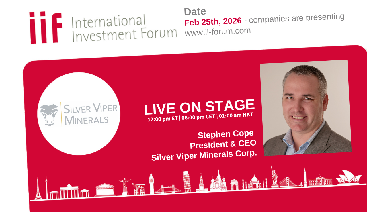 Die derzeitigen Rücksetzer des Gold- und Silberpreises auf die Niveaus von Ende 2025 bieten noch nicht im Markt befindliche Investoren die Chance, sich bei aussichtsreichen und gut finanzierten Explorationsunternehmen wie Silver Viper Minerals zu günstigeren Aktienkursen zu beteiligen. Mit einer Marktkapitalisierung von ca. 175 Mio. CAD bei einer hohen Beteiligungsquote von institutionellen Investoren bieten die aktuellen Kursrücksetzer eine attraktive Gelegenheit, sich noch am Unternehmen zu beteiligen. Wer zudem das Unternehmen Ende Februar besser kennenlernen möchte, der merkt sich den 25.02.2026 um 18 Uhr schon einmal vor. Dann präsentiert das Unternehmen der CEO Stephen Cope bei der virtuellen Konferenz des Internationalen Investmentforum. Mehr dazu finden Sie hier: https://ii-forum.com/timetable-18-iif/