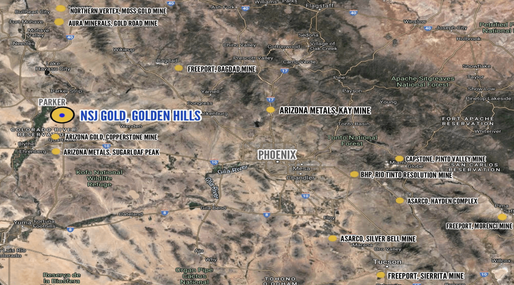 Der junge kanadische Explorer NSJ Gold (WKN: A2QQ5R ISIN: CA62973P1071 Ticker: 9PZ) ist im Westen von Arizona im Lapaz County direkt an der Grenze zu Kalifornien aktiv. Dort verläuft der „Walker Lane Gold Trend“, wo der Explorer, der Konzessionsrechte inklusive Kaufoption auf das dortige Golden Hills Projekt inne hat, bereits bohrt. 16 Bohrlöcher mit insgesamt 1.263 Bohrmetern sind niedergebracht worden und um die bereits entdeckte Gold-/Kupfererzgangzone platziert. In der Zone wurden bereits längere Abschnitte mit 1,13% Kupfergehalt festgestellt. Neun der 16 Bohrlöcher sind bereits ausgewertet, wie erst am Wochenanfang vom Unternehmen bekanntgegeben wurde.