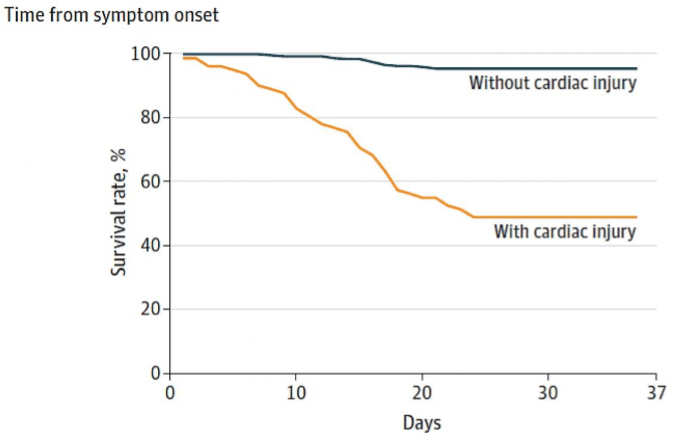 Diese Patientengruppe hat nach einer früheren Studie eine sehr hohe Sterblichkeitsquote bei Erkrankung an Corona im Vergleich zu Patienten ohne Vorerkrankungen des Herzens. Die beigefügte untere Abbildung zeigt sehr deutlich den signifikanten Unterschied in der Sterblichkeitsrate von Patienten ohne Herzerkrankung und Patienten mit Herzerkrankung. Dieses Ergebnis wurde im JAMA CARDIOLOGY Network am 25. März 2020 veröffentlicht. Die Überlebenswahrscheinlichkeit sinkt bei COVID-19-Patienten mit Herzerkrankung von 94 Prozent auf knapp unter 50 Prozent, da diese Patienten meist durch Herzversagen auch mechanisch beatmet werden müssen.