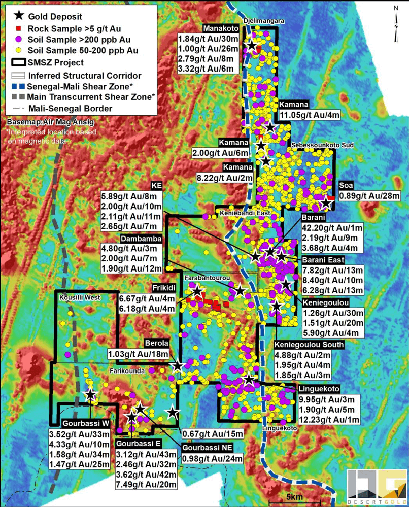 Wie auch B2Gold ist auch Barrick Gold in Mali/Senegal mit der Produktionsstätte Loulo-Gounkoto aktiv. Damit sind Barrick Gold und B2Gold potentielle Käufer und/oder Kooperationspartner für Desert Gold Ventures, denn diese Unternehmen sind immer auf der Suche nach neuen Produktionsstandorten, um sich den lohnenden Goldabbau auch für die nächsten Jahre zu sichern.